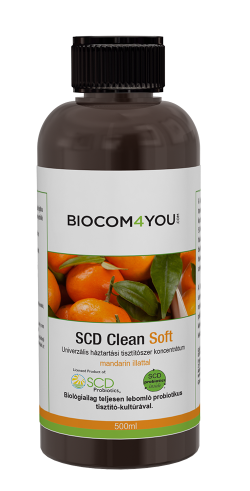 A Clean Soft az SCD Probiotikus Technológia által természetes fermentációval kifejlesztett folyékony probiotikus tisztítószer koncentrátum, mandarin illóolajjal. Eltávolítja a zsírt és a különféle szennyeződéseket a legtöbb felületről. Tisztít és fényesít. Bőr- és környezetbarát termék.